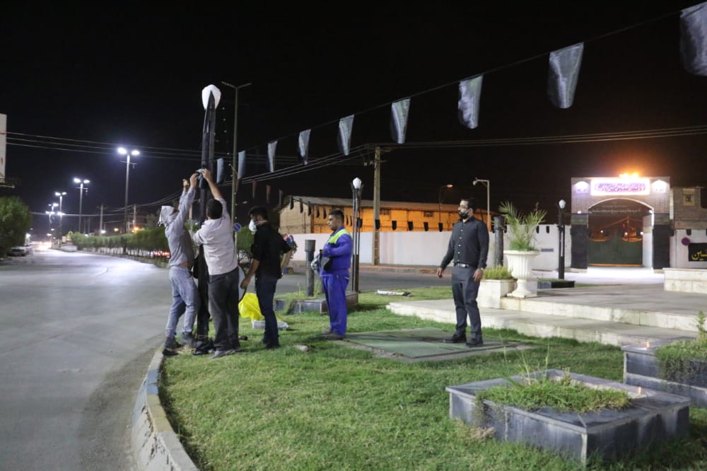 معاونت فرهنگی اجتماعی شهرداری مسجدسلیمان به مناسبت فرارسیدن ماه محرم خیابان ها و میادین سطح شهر مسجدسلیمان را با ریسه، پرچم و کتیبه های مشکی مزین به نام حسین (ع) سیاه پوش کرد.
