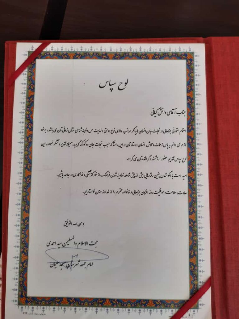 به گزارش پایگاه خبری تحلیلی سیماش ، چندی پیش اتفاق ناگواری در یکی از محلات شهرستان رخ داد که در این حادثه دو کودک در کانال فاضلاب گرفتار شدند که در این بین جوان شایسته و فداکاری از اهالی همان محل با رشادت کامل برای نجات دو کودک به درون کانال رفته و دو کودک را از مرگ حتمی نجات داد که این حرکت از دید امام جمعه ی محبوب شهرستان پوشیده نبود و طی دعوتی از این جوان تقدیر و تشکر بعمل آمد.
