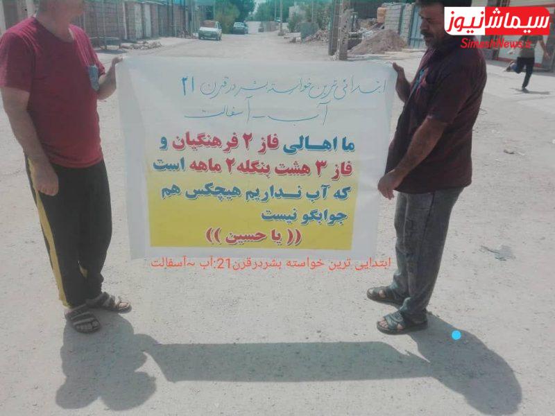 اهالی فاز ۲ فرهنگیان و فاز ۳ هشت بنگله در شهرستان مسجدسلیمان استان خوزستان ۲ ماه است که با مشکل بیآبی مواجه هستند