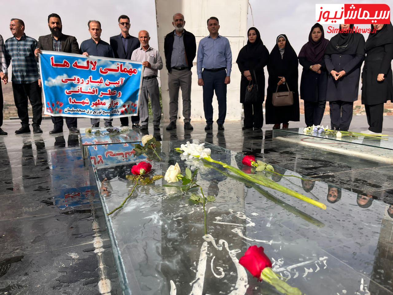 به گزارش پایگاه خبری تحلیلی سیماش، به مناسبت هفته بسیج، مدیریت و پرسنل شرکت توزیع برق مسجدسلیمان با حضور بر سر گلزار مطهر شهیدان گمنام شهرستان و با غبار روبی و عطرافشانی این قبور و قرائت فاتحه به مقام شامخ شهیدان ادای احترام نمودند.