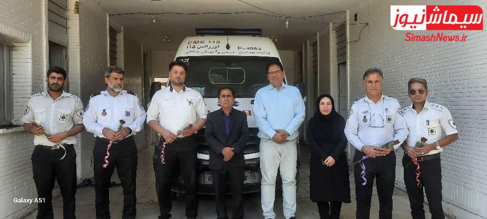 به گزارش روابط عمومی شبکه بهداشت و درمان شهرستان مسجدسلیمان دکترحسینی نژاد مدیر شبکه بهداشت و درمان به همراه دکتر نیک خلق رئیس بیمارستان ۲۲بهمن و مهندس زمانپور رئیس مرکز بهداشت شهرستان ظهر امروز با حضور در پایگاه های مرکز مدیریت حوادث و فوریتهای پزشکی این شهرستان ، فرا رسیدن روز فوریتهای پزشکی و اورژانس ۱۱۵ را با اهداء شاخه گل به پرسنل پرتلاش این مرکز تبریک و از زحمات و خدمات آنان برای حفظ سلامت و نجات جان مردم و رسیدگی به موقع به بیماران اورژانسی و مصدومان حوادث قدردانی نمود .